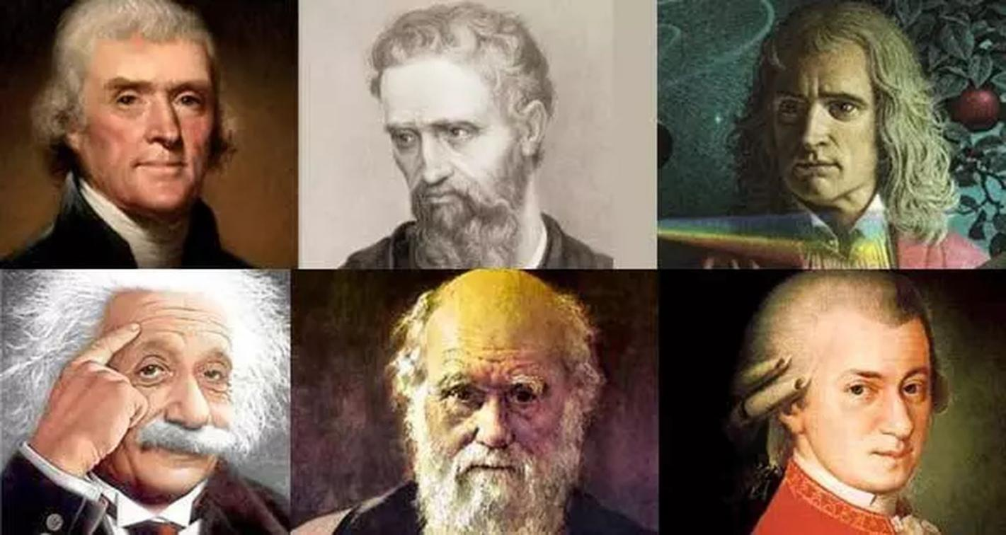 这些人都有自闭症的一些症状:回避社交,对某一个领域异常专注。上排左起:托马斯·杰斐逊,米开朗基罗,牛顿;下排左起:爱因斯坦,达尔文,莫扎特。